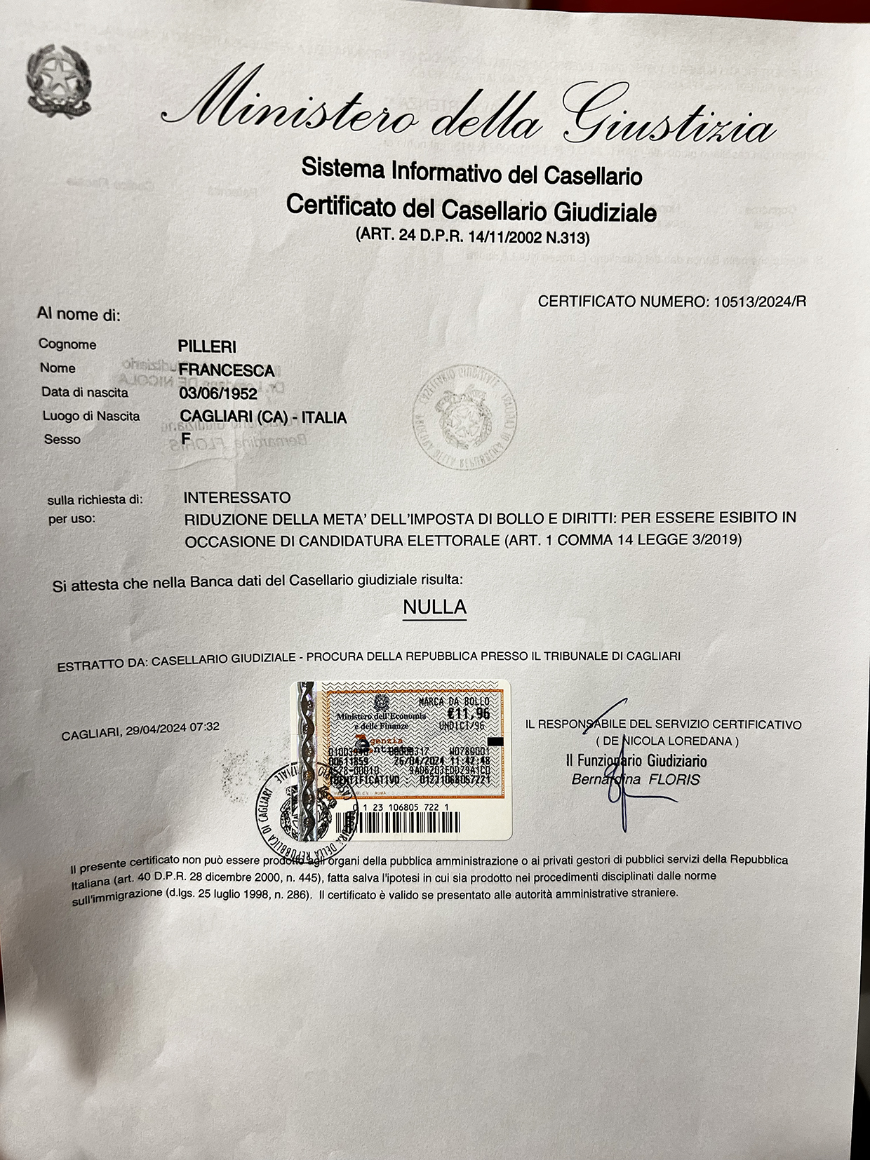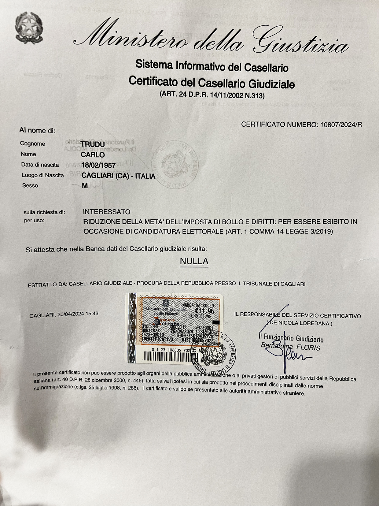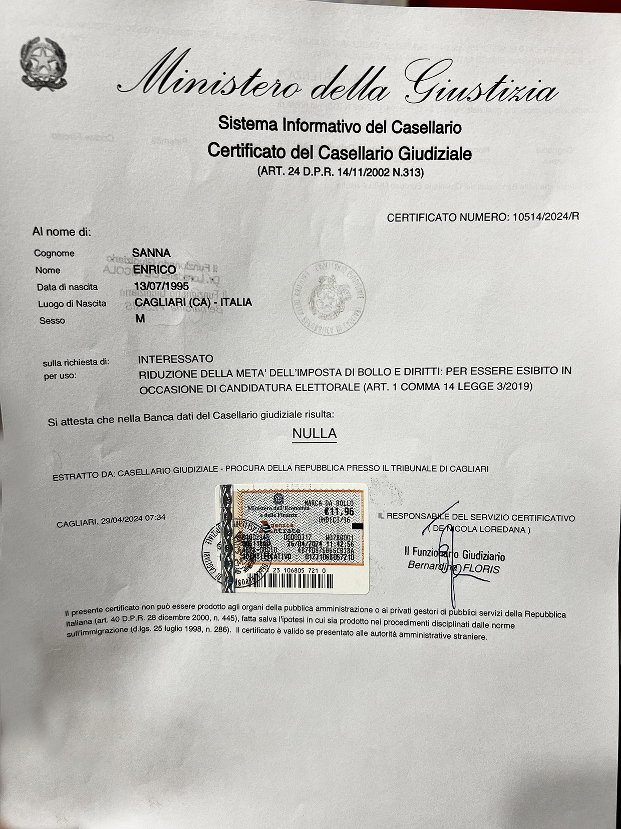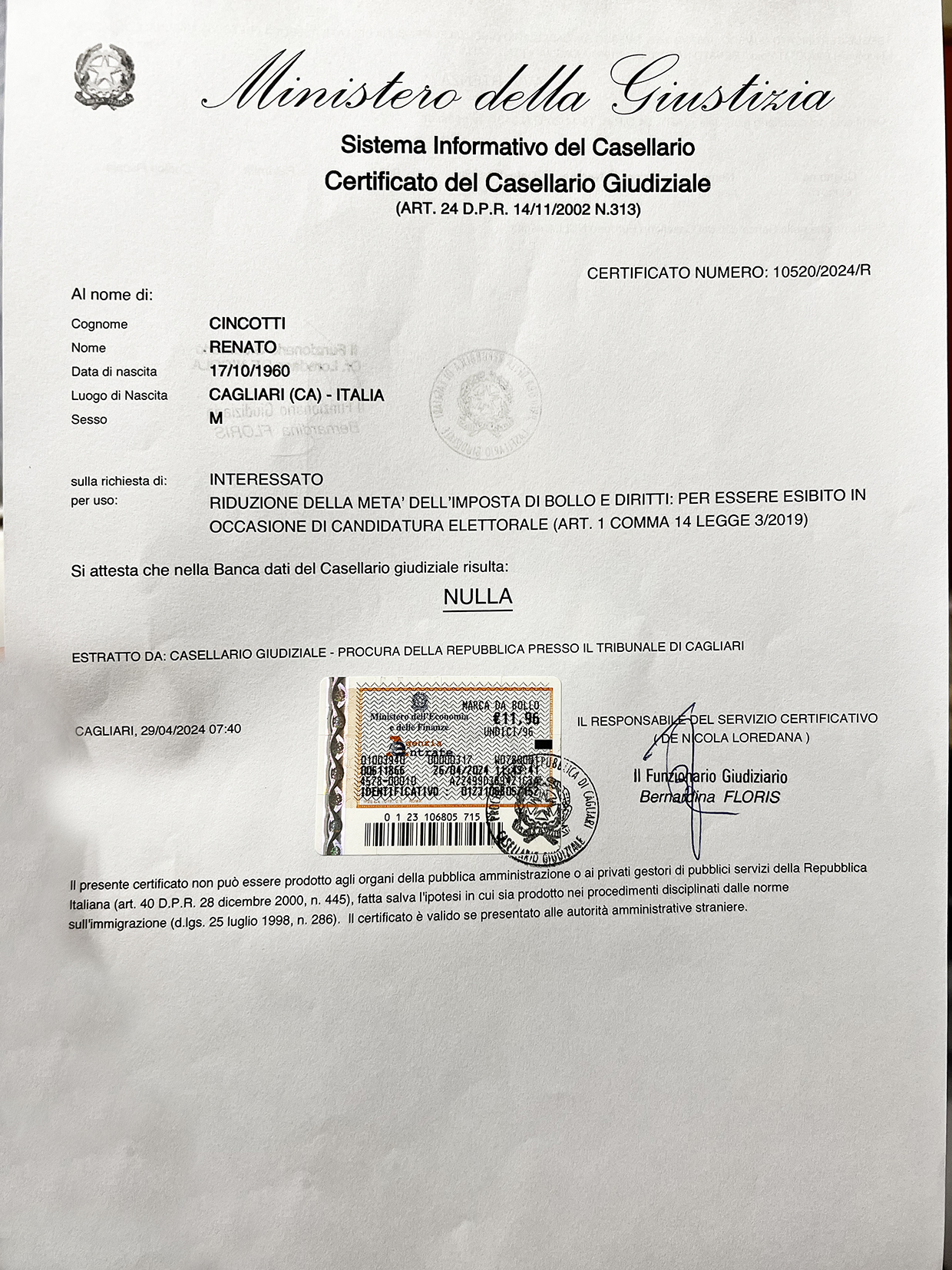 Adempimenti di cui all’art. 1, comma 14, della Legge 9 gennaio 2019, n. 3 “Misure per il contrasto dei reati contro la pubblica amministrazione, nonché in materia di prescrizione del reato e in materia di trasparenza dei partiti e movimenti politici”, di seguito la pubblicazione dei curriculum vitae dei candidati di Alternativa e il relativo certificato penale.