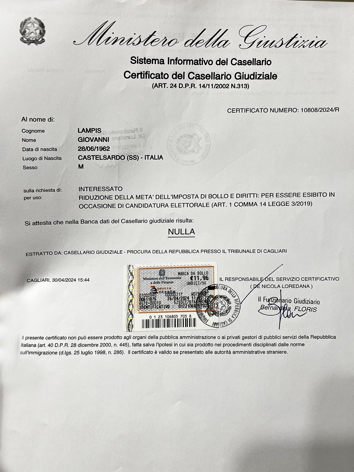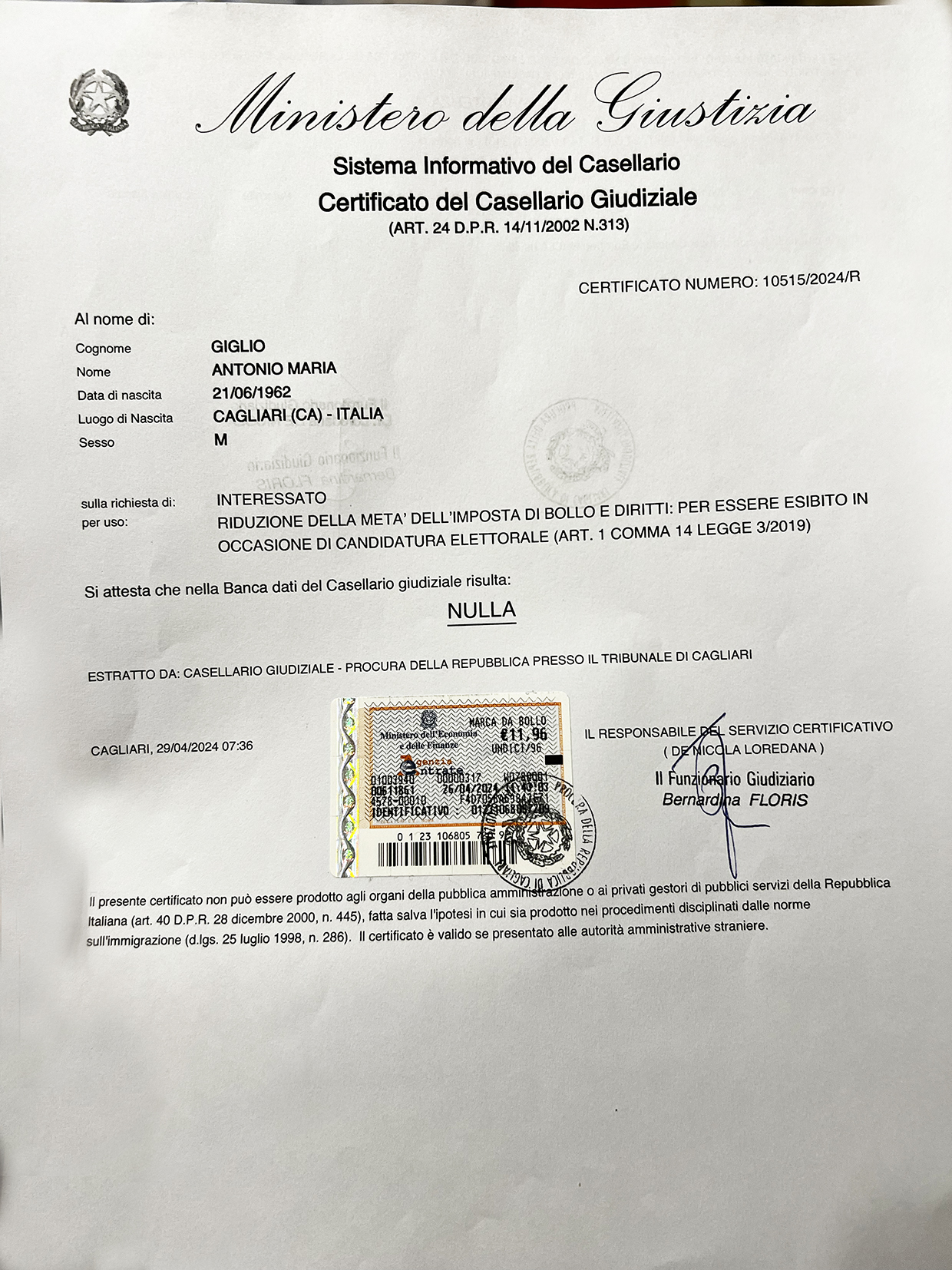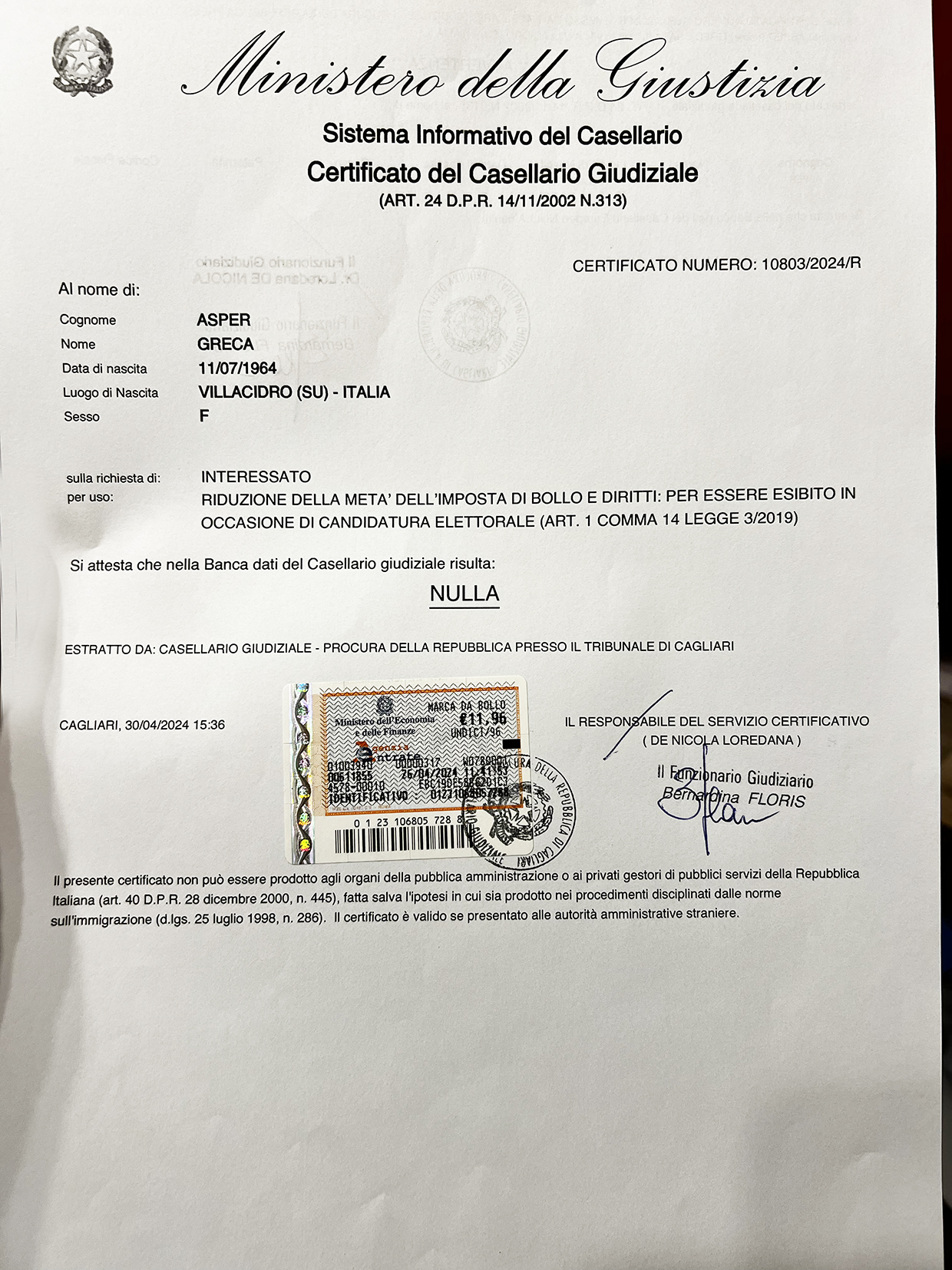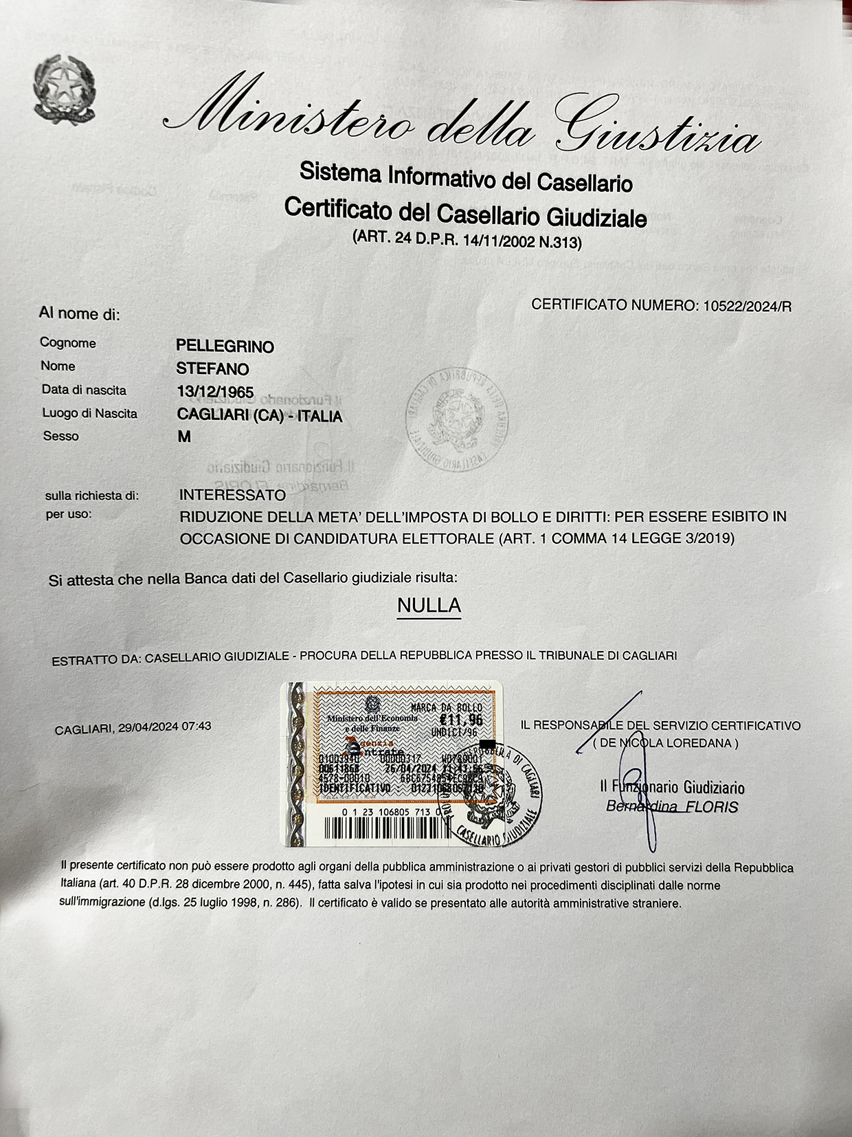 Adempimenti di cui all’art. 1, comma 14, della Legge 9 gennaio 2019, n. 3 “Misure per il contrasto dei reati contro la pubblica amministrazione, nonché in materia di prescrizione del reato e in materia di trasparenza dei partiti e movimenti politici”, di seguito la pubblicazione dei curriculum vitae dei candidati di Alternativa e il relativo certificato penale.